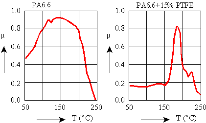 against soft metal, e.g. Cu, Al. Low plastic-on-plastic wear